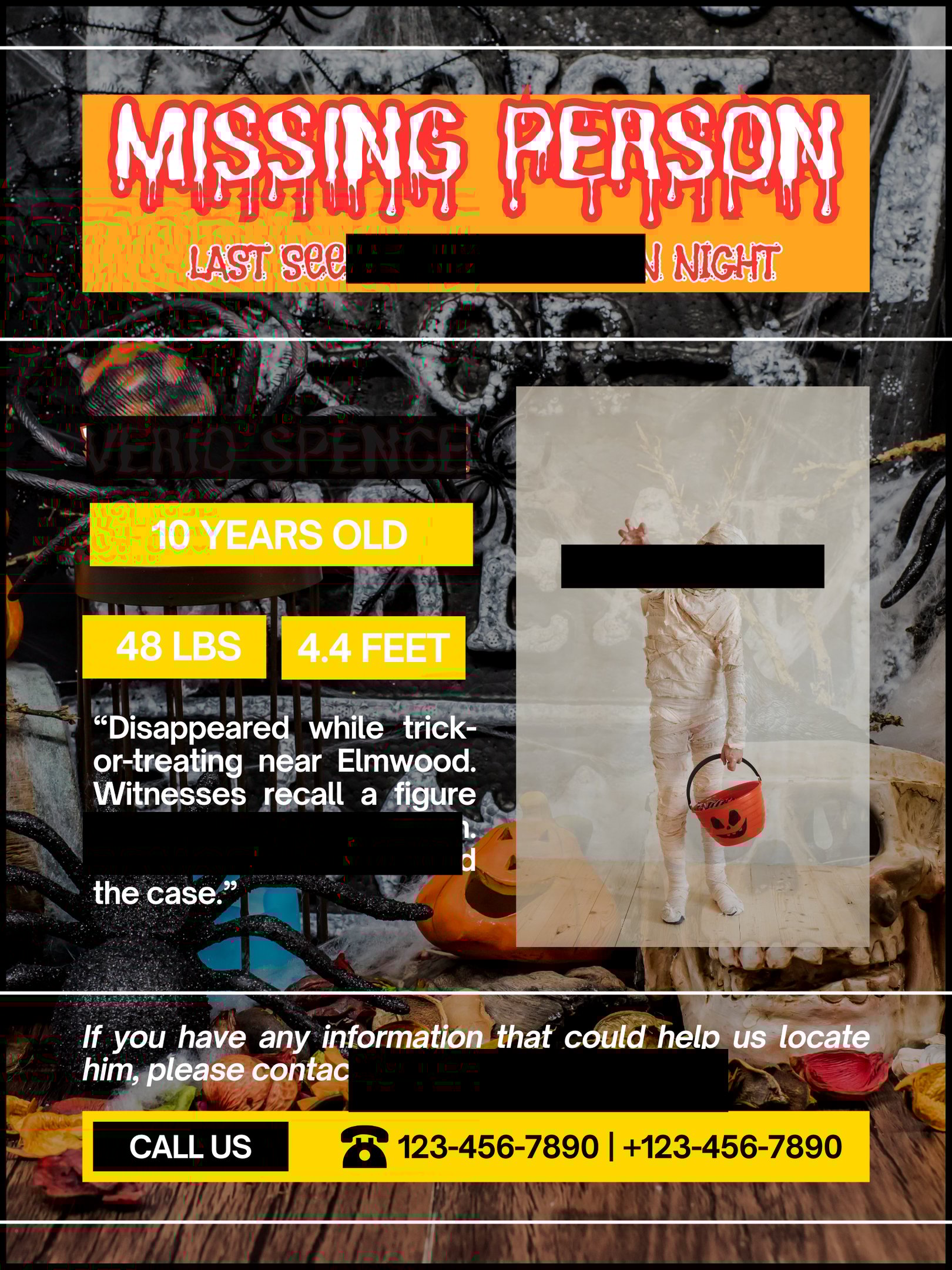 This flyer reappears every October with a different date handwritten in the corner. Missing child. Unknown cause.